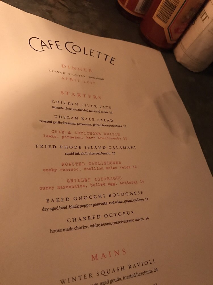 Introducing the menu at Cafe Colette, a charming spot in Brooklyn known for its burgers, New American cuisine, and delightful breakfast options. This hipster-friendly establishment offers vegan and vegetarian choices, a full bar, and outdoor seating. With a moderate noise level, it's ideal for groups and brunch gatherings. Serving up delectable dishes like quiche, avocado toast, Caesar salad, and more, Cafe Colette has garnered rave reviews from customers. The cozy atmosphere, impeccable service, and delicious food make it a must-visit destination. Don't miss out on their signature dishes like the cheeseburger and basque cheesecake, which have received glowing praise. Stop by Cafe Colette for a memorable dining experience in Brooklyn.